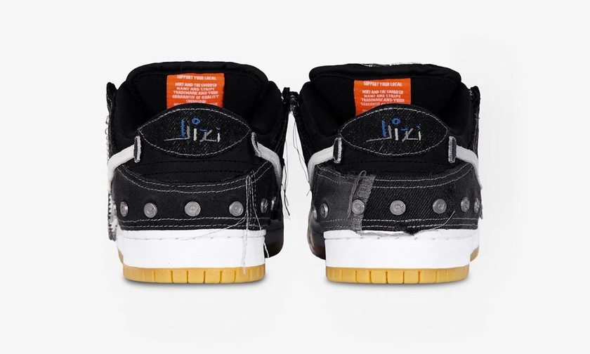 这款客制作品选用丹宁材质塑造鞋面,黑色框架搭配具有水洗效果的鞋头,以及通过解构手法塑造的后跟,潮流气质满满。