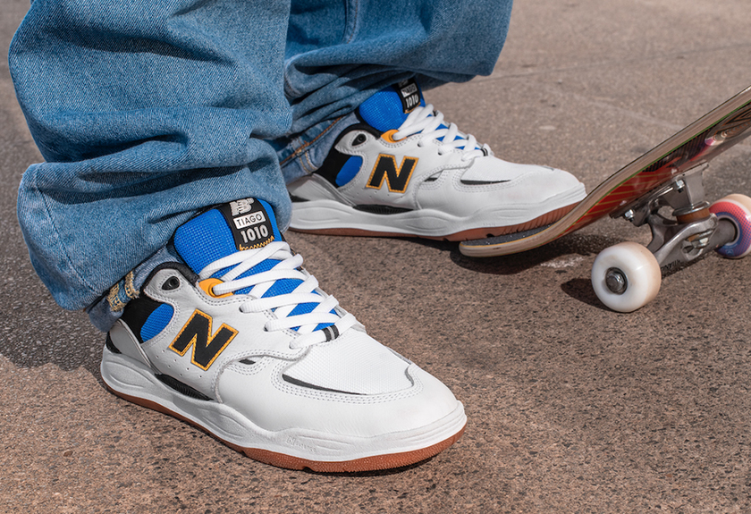 最近 New Balance 为知名滑板手 Tiago Lemos 打造了首款签名鞋 New Balance Numeric 1010。这款鞋灵感来自于 90 年代的传统滑板鞋款以及 New Balance 在跑步和篮球鞋款中的成熟技术。
