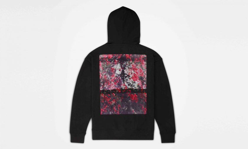 与联名鞋同时推出的还有一款连帽卫衣,同样以花卉摄影作品作为主打设计。