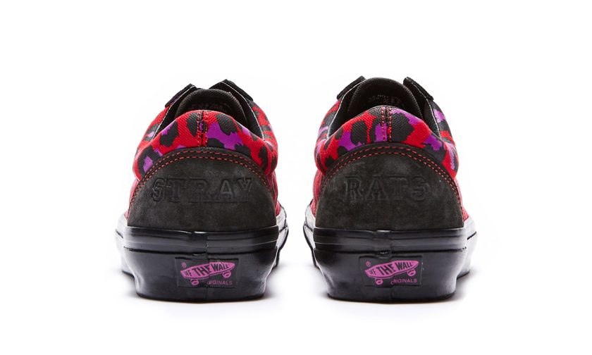 整个系列在设计风格上保持一致,采用豹纹印花帆布与纯色麂皮拼接示人。 Old Skool 上消失不见的经典 Jazz Stripe,堪称一大特点,让人眼前一亮。鞋款后跟处的 Stray Rats 压印 logo 则表明了联名身份。