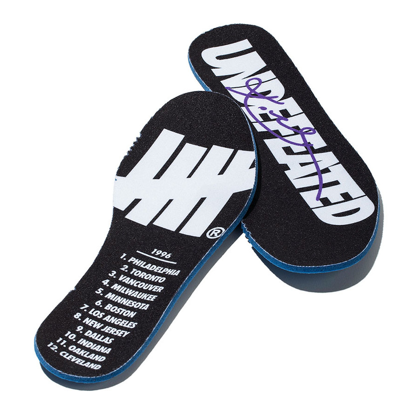这次 UNDEFEATED 与 Kobe 5 Protro 的联名套装灵感来源于当年的科比选秀,主题为“What If ”,共带来两款配色。一款以当年错过科比的 12 支球队配色呈现,一款以当年选中科比的黄蜂队配色呈现。