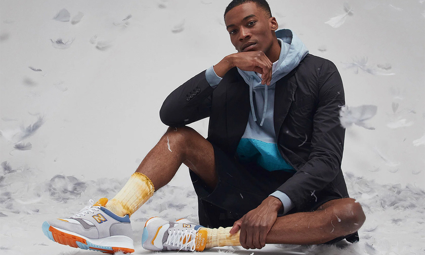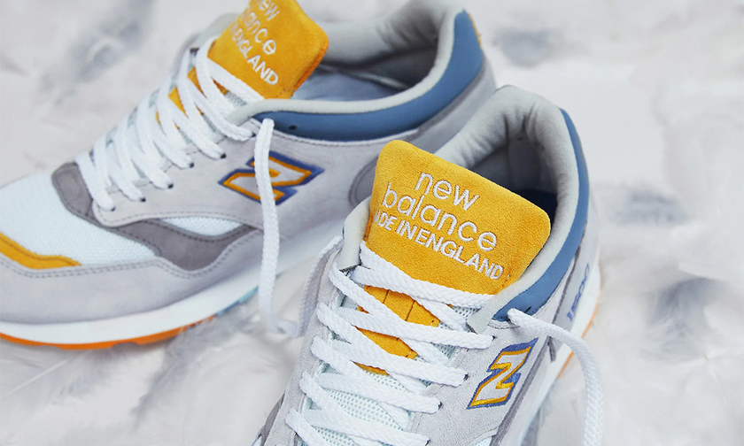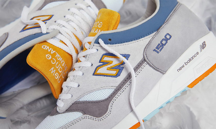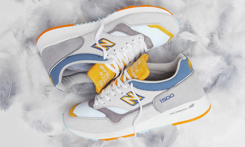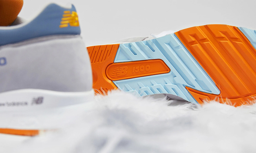 联名以品质极高的经典英产 1500 鞋型为蓝本塑造,灰、蓝、橙多种色调组合,优雅高级又不失活力。