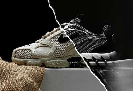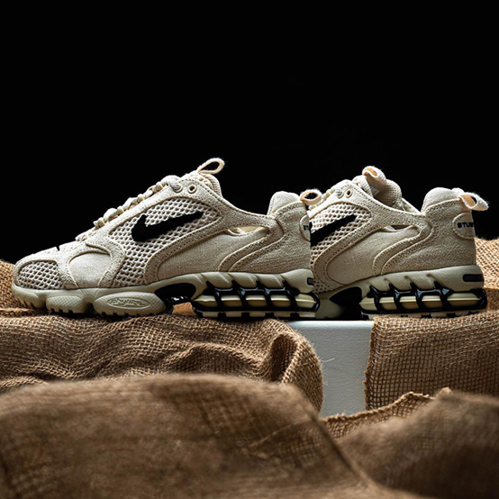另一款Stussy x Nike Air Zoom Spiridon KK鞋型则和Cage 2在后跟上有着一致的设计,但是在鞋面上的设计更加高调。采用一体式的鞋身设计,配合织物网布材质包裹感极佳还有不错的透气性。在此基础上带来透明TPU框架包裹,在外观上带来极强的潮流质感,同时也为鞋身带来上佳的支撑保护,让这款潮鞋即使上脚运动跑步也不在话下。