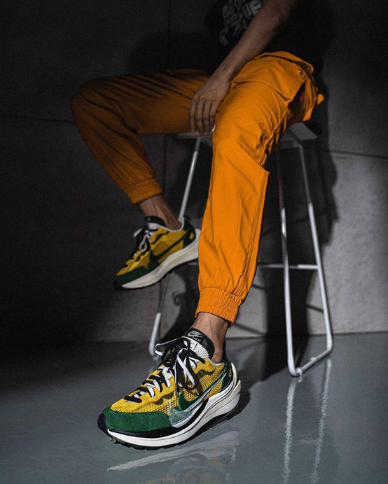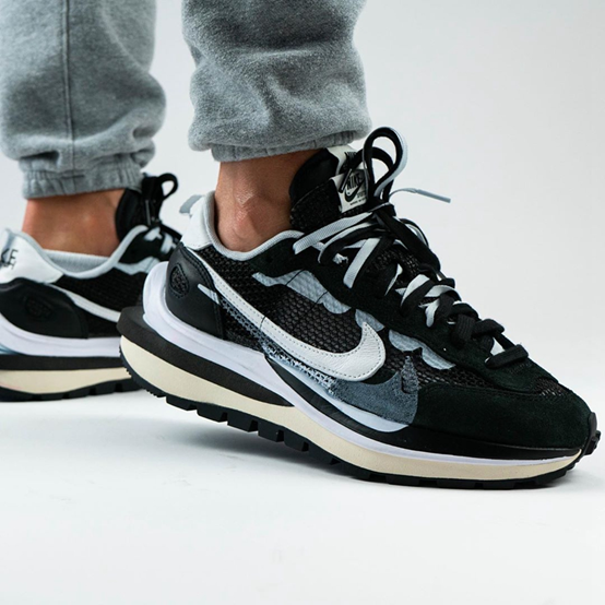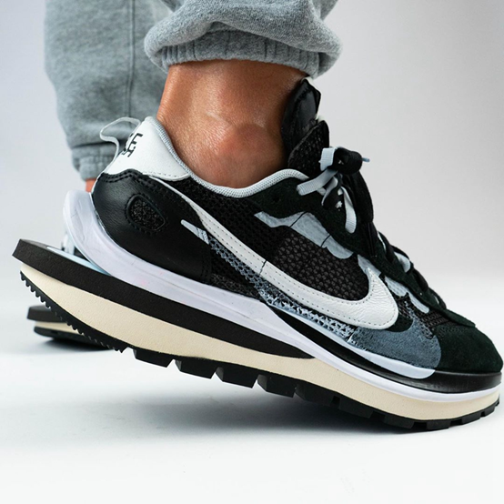 再来看一款超高品质并且名头不小的联名鞋款Sacai x Nike VaporWaffle,Sacai在去年推出的联名鞋款可谓大获成功,今年的鞋款推出则可说是乘热打铁。依旧是复古风格的老爹鞋鞋型呈现,这款VaporWaffle也采用了极有辨识度叠加设计,中底、Swoosh和鞋舌无一例外。和上一作不同的是鞋型做了变化,鞋身曲线更加圆滑。