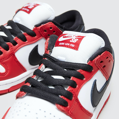 最后让我们来聊聊这双Nike自己和自己联名的Dunk SB Low“芝加哥”配色,这个专属于AJ1的配色首次移植到Dunk SB上的操作算得上Nike在近两年屡试不爽的操作。经典的白红色系装饰鞋身,用黑色点缀Swoosh、鞋带和后跟鞋帮,和AJ1芝加哥如出一辙,颜值极高。