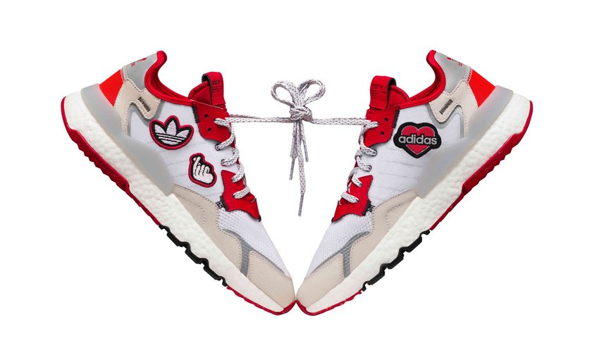 最后,Nite Jogger 采用不同明度的红和灰色调打造丰富的层次感。比心、爱心以及三叶草魔术贴则在鞋身碰撞出酷炫不羁的视觉,带来吸睛十足的街头浪漫。