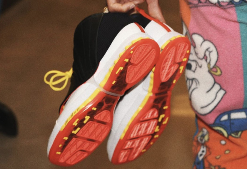 这款联名以黑白两色主打,鞋舌部分橘色和黄色细节的点缀,搭配橙色外底,营造出抢眼的视觉效果。