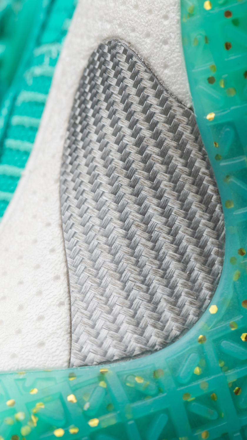 鞋面防撕裂 CURDURA 科技面料加持,搭载全掌䨻 + 大面积碳板中底,则保证了这双鞋的性能。