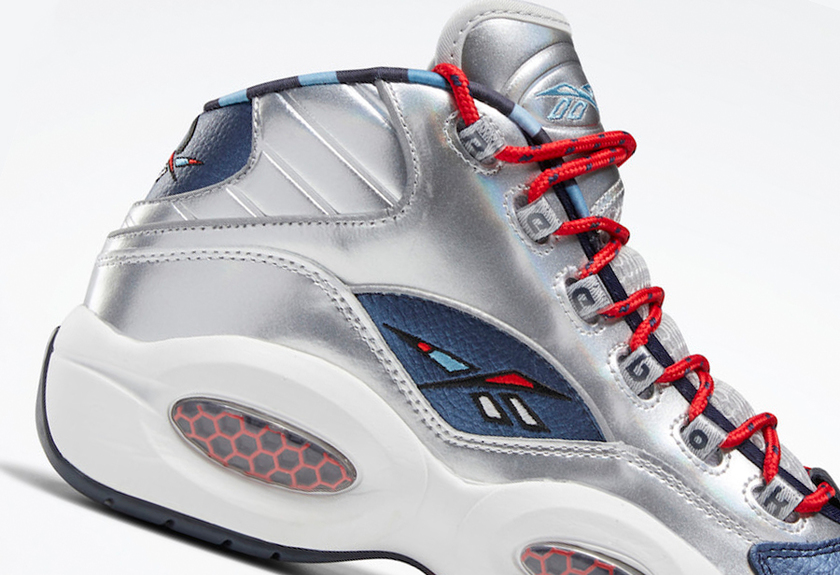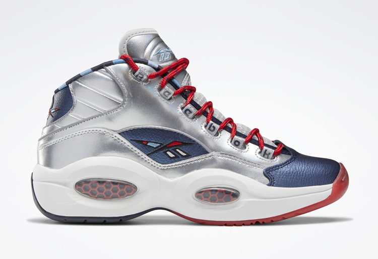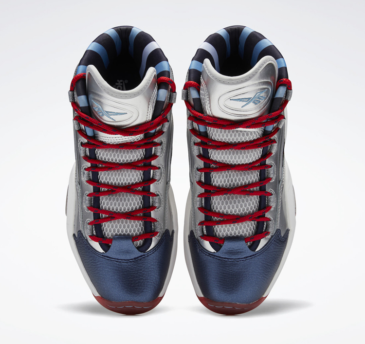 以两大巨星艾佛森与哈登的首款签名战靴为灵感来源, Reebok 与 adidas 于前段时间推出了全新鞋款 Reebok Question Mid “OG Meets OG” 。继黑红配色发布后,第二款银蓝配色曝光,近日具体发售日期释出。