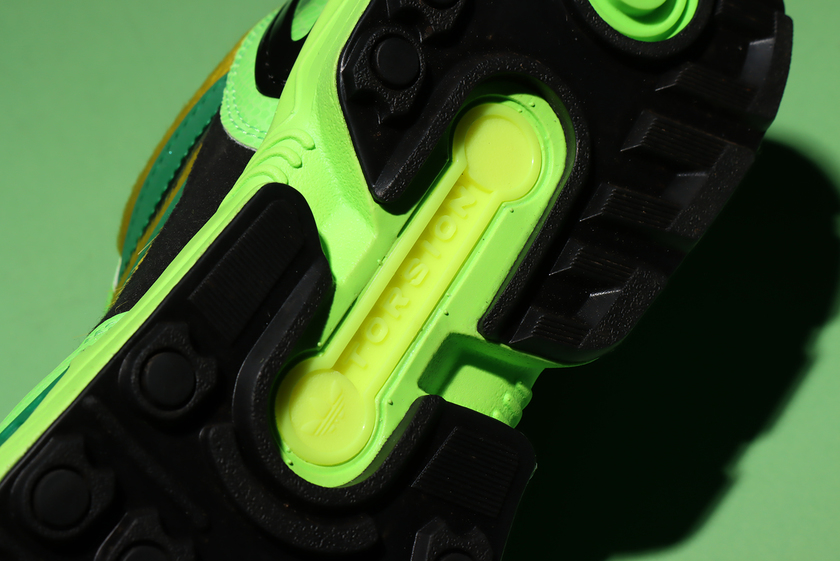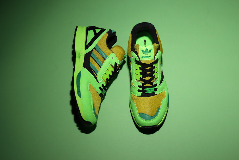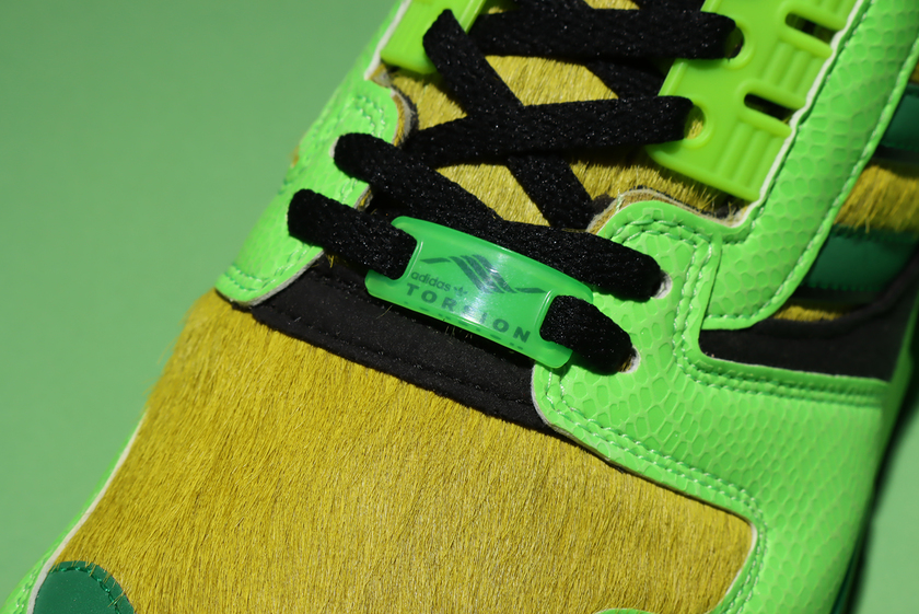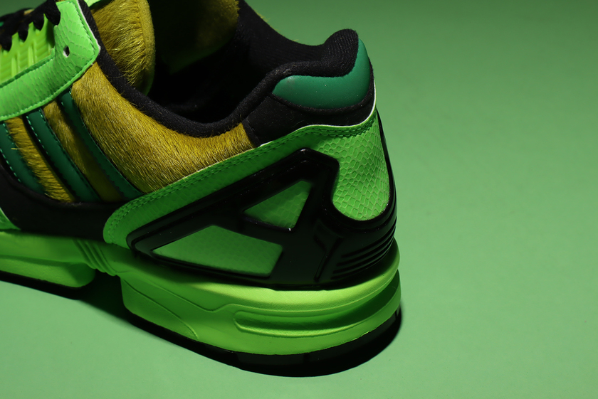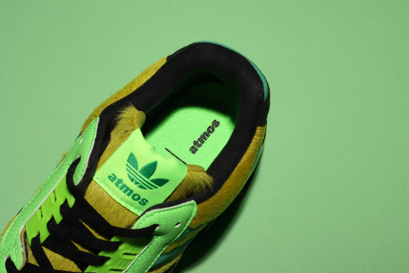 这款联名以 1989 年发布的 ZX8000 鞋型为基础,在尊重元年配色的同时,使用了夜光蛇纹皮革和马毛塑造,使得视觉效果更具现代感。