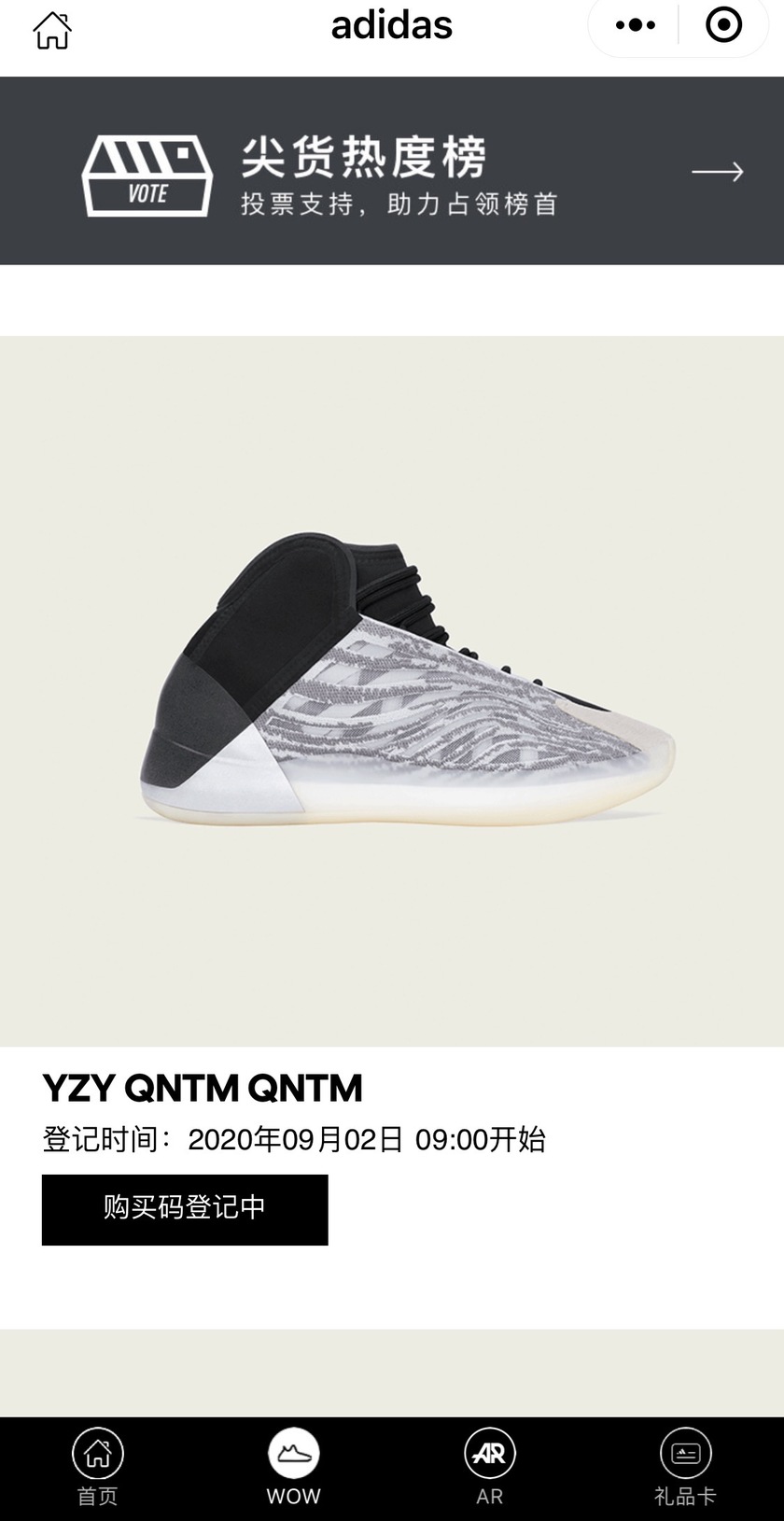 目前 adidas 小程序登记已经开启,喜欢的朋友赶紧去登记吧。
