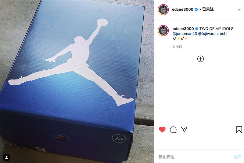 在官方图片与发售日期释出之后,疑似藤原浩 Fragment x Air Jordan 3 联名的鞋盒也在网上曝光了,由与 Jordan Brand、藤原浩本人关系都非常好的冠希哥晒出。