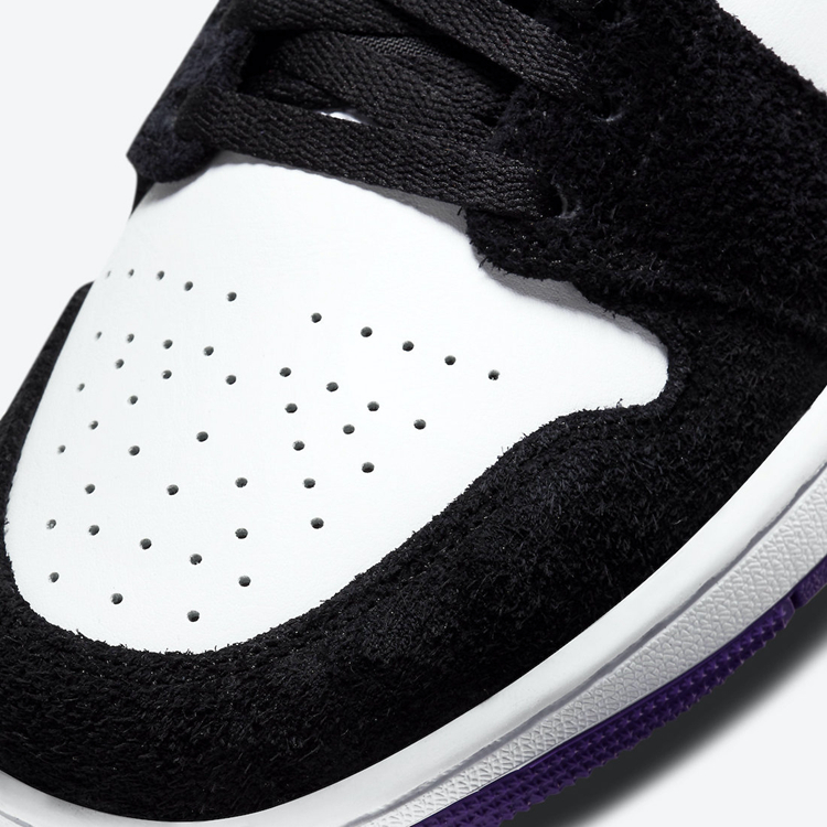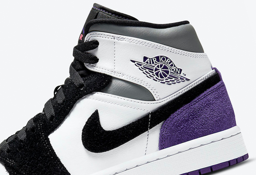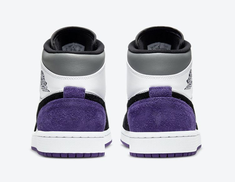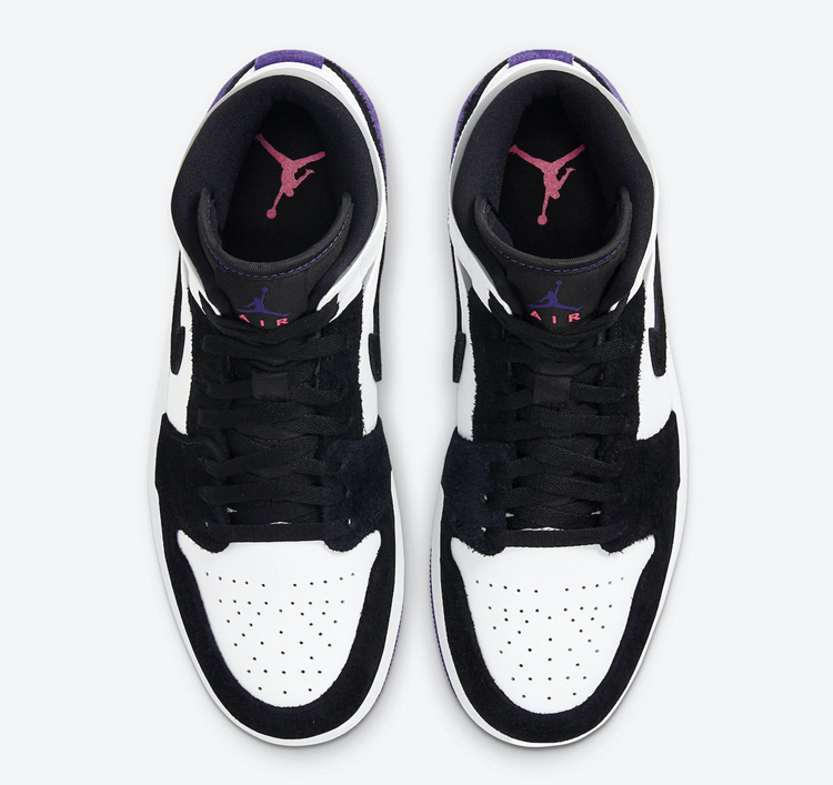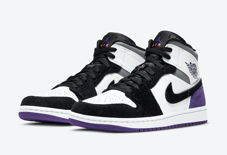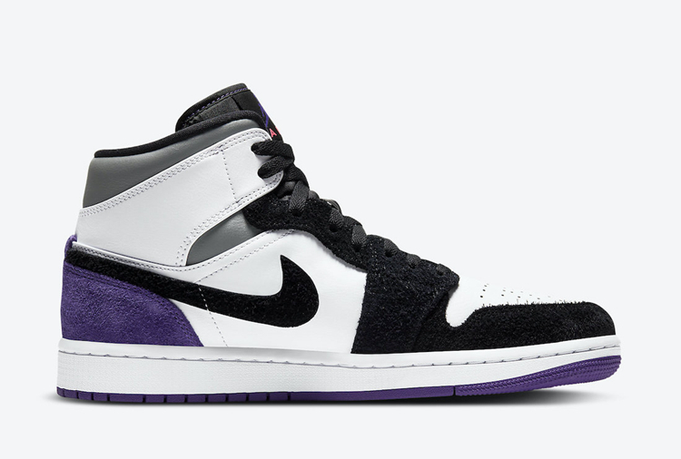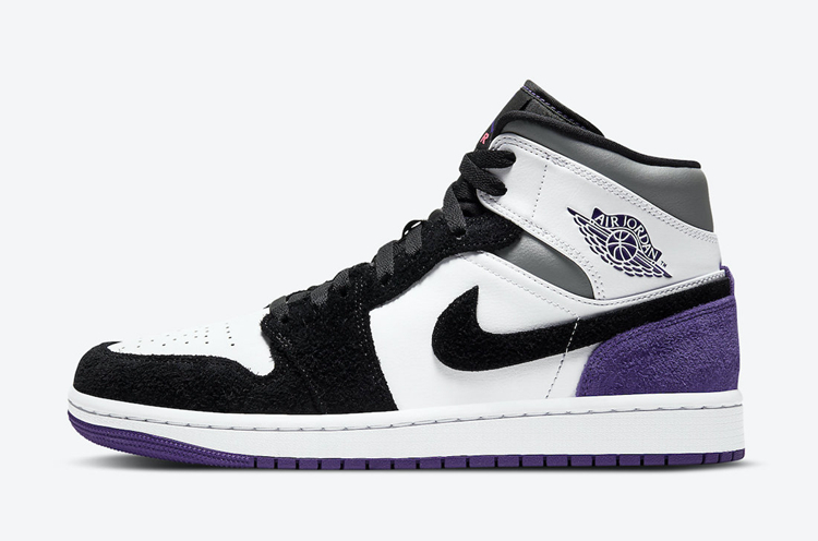 这款全新的 AJ 1 Mid 配色采用黑白色调拼接塑造,饰以紫色后跟细节与灰色鞋帮细节,气质清新又不失抢眼元素。高质感麂皮与皮革的塑造,则带来秋冬氛围,没有上脚也能感受到温度。