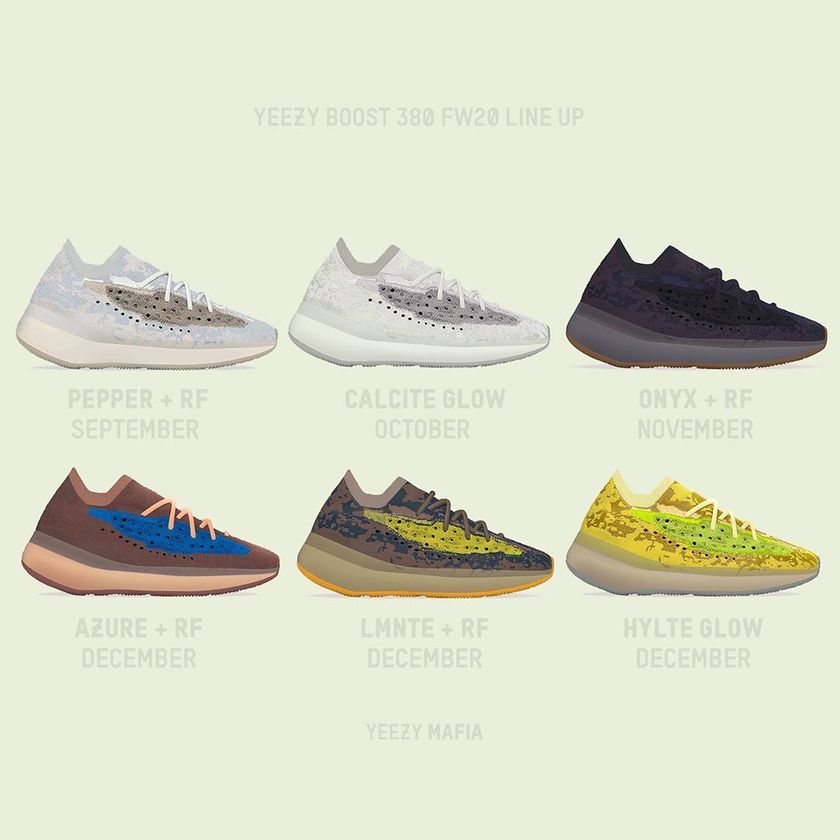 可以看到本月即将登场的仅有一款全新的 Yeezy 篮球鞋了。Yeezy 380 “Pepper”已经开始抽签登记, Yeezy 350 V2 “Asriel”则要推迟到下月发布。