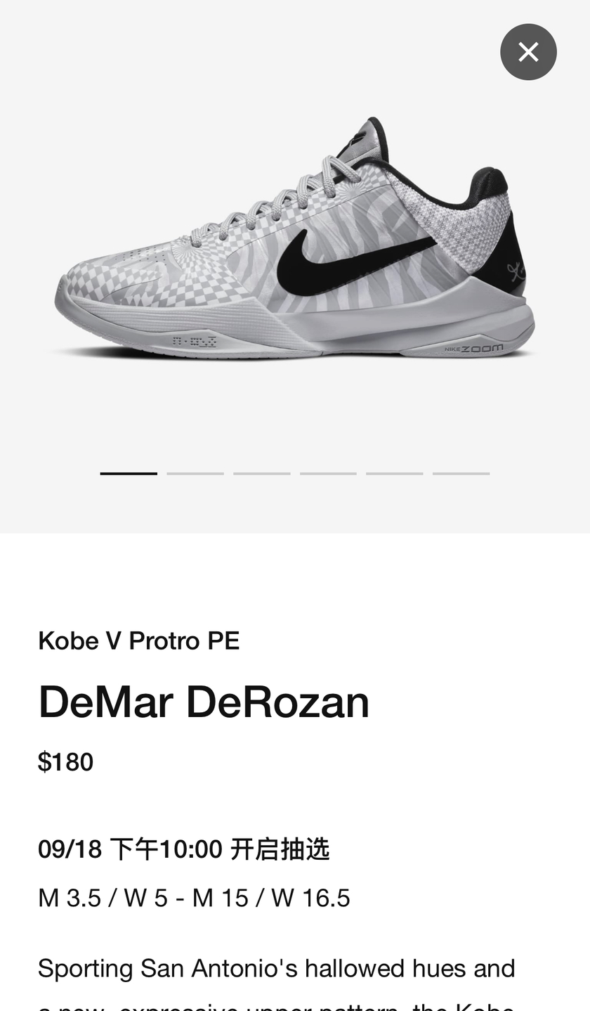 继德罗赞上脚,发售信息释出之后,海外 SNKRS 正式上架了 Kobe 5 Protro PE “DeMar DeRozan”配色,看来本周要抢的鞋又多一双了。