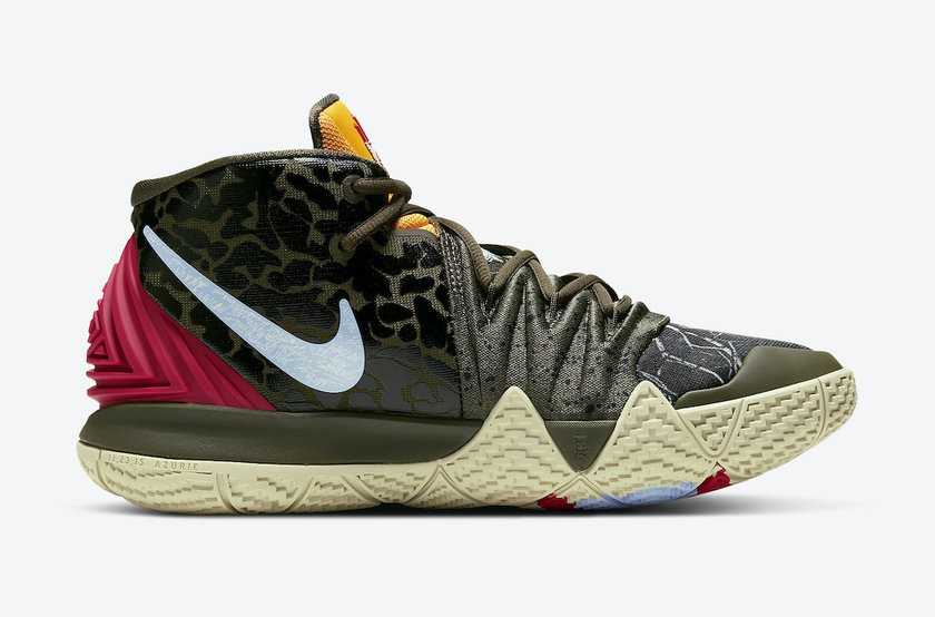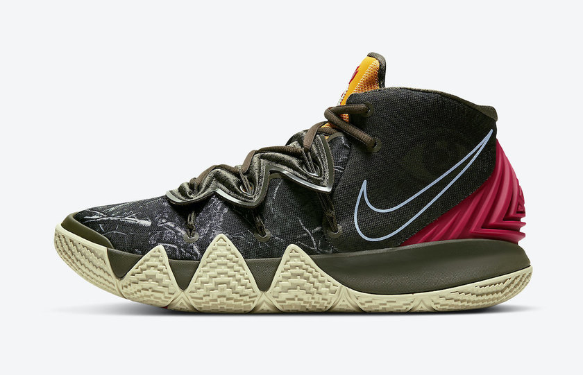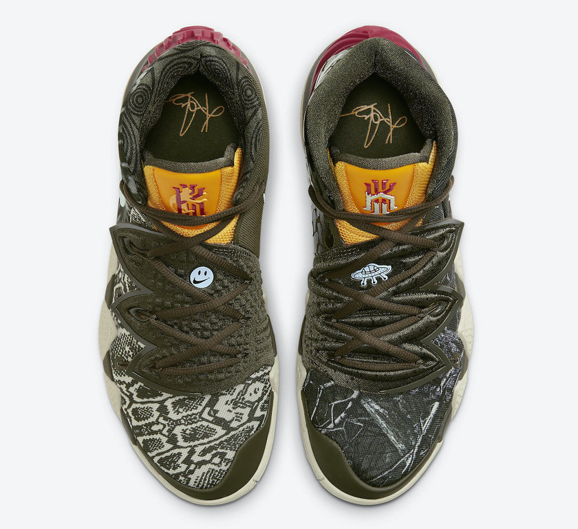 这款配色以褐绿色调为主,各式花纹纹理的点缀,硬核感与潮流气质爆棚。鞋舌部分以亮黄色点缀,则与整体形成反差,带来极高的吸睛度。银白色 Swosoh 以及刺绣花卉的加持,展现出这双鞋细节打造的精致。
