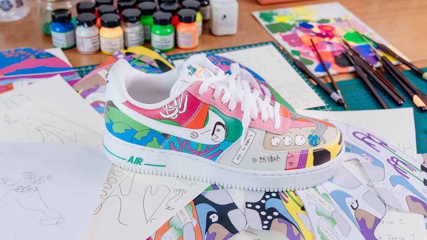 这次联名系列所有鞋款设计相似,均以饱含王若晗个人风格的画作图案拼接而成,鲜明的色彩与卡通艺术结合,玩趣又诙谐。“力量与爱”、“自然循环”等手写版字样,则传达着本次环保合作主题。鞋款至少由 50% 的天然皮革纤维制成的 Flyleather 材质,则同样寓意环保。