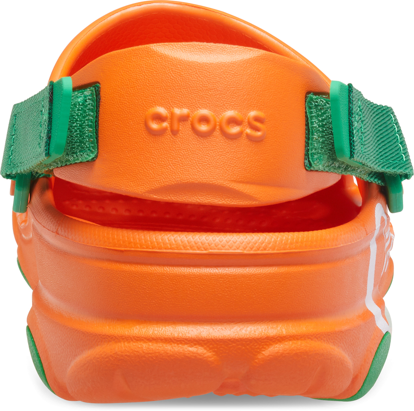 本次,联名款特林克骆格,以品牌标志性的 Logo 与色系打造。采用亮眼的橙色为主色调,在后跟带的可调节处与凸纹鞋底则是以绿色来呈现,并于鞋身两侧添加醒目的白色“Carrots”字样。鞋面上还搭配有三款可拆卸智必星(JibbitzTM):品牌 Logo、胡萝卜图案及品牌创始人 Anwar Carrots 签名字样。