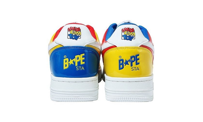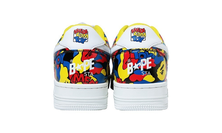 双方以经典鞋型 BAPESTA 为蓝本,带来了 MEDICOM TOY x BAPE BAPESTA 联名系列。系列共有两款配色,分别以经典红、黄、蓝、白四色拼接设计与多彩 BAPE Camo 装扮呈现。