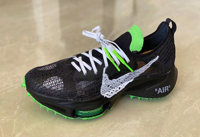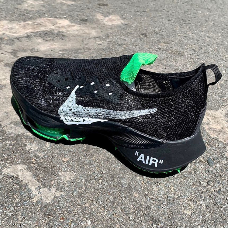 首度曝光便引起极高关注的 Off-White x Nike Air Zoom Tempo NEXT% 系列黑绿配色,近日又有最新实物照释出。