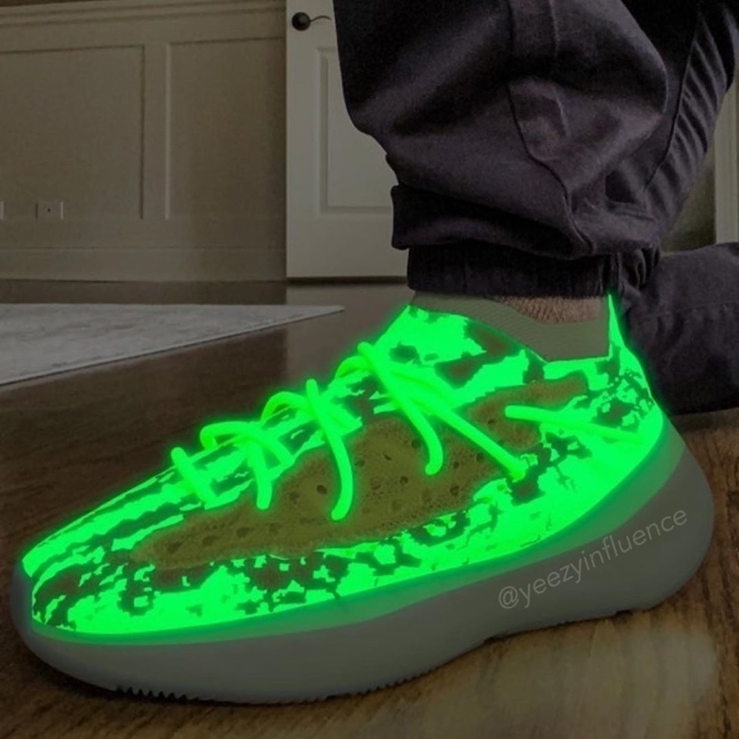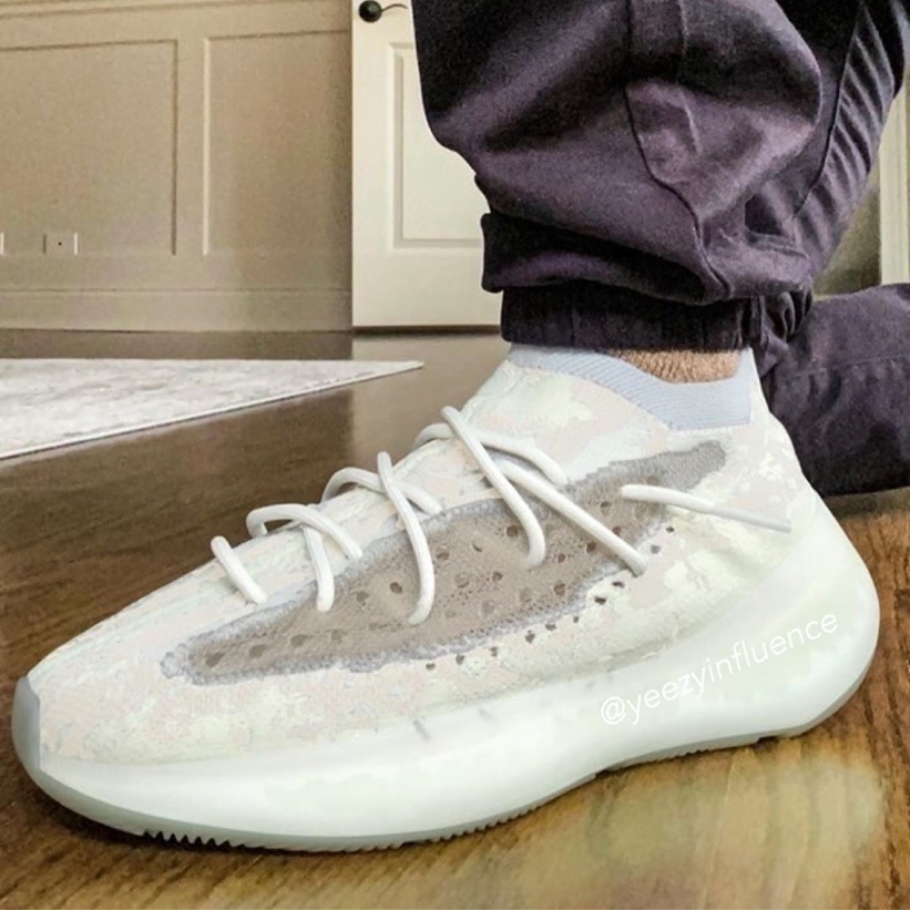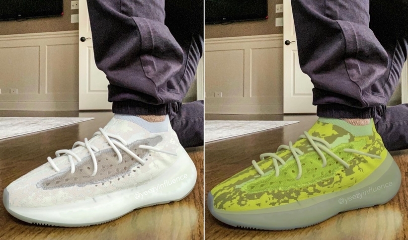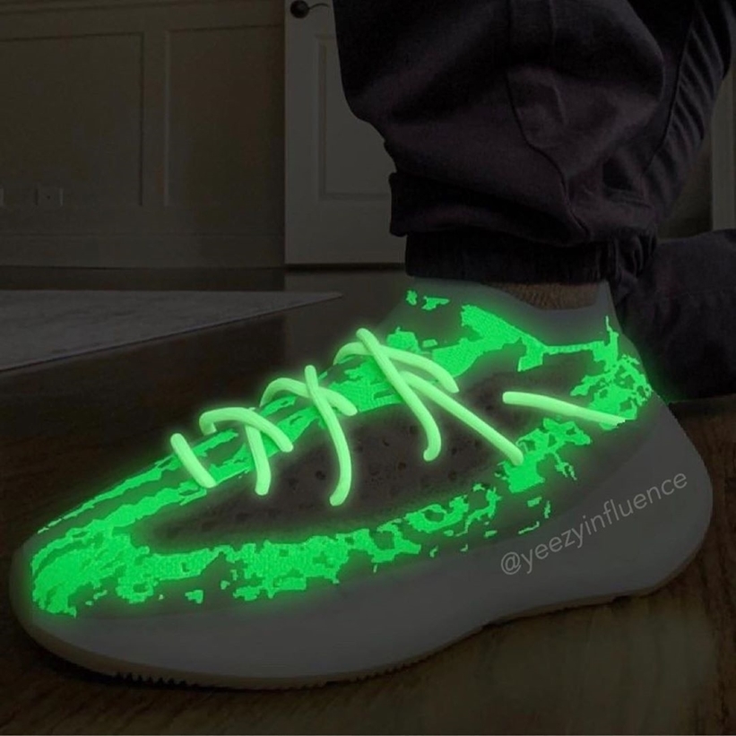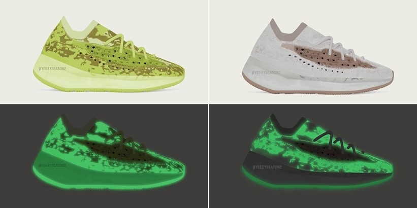 首次将夜光元素融入鞋面,侃爷与 adidas 打造了 Yeezy 380“Hylte Glow” 和 “Calcite Glow”配色。经过渲染图、实物与发售日期曝光后,近日,球鞋账号 @yeezyinfluence 释出了这两款配色的上脚演绎。