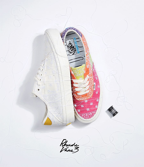 然后让我们了解一下传统板鞋,也就是Vans一类的帆布板鞋,在今年滑板鞋大热的情况下,Vans同样有不俗的表现。近期再次推出此前大获成功,初代合作鞋款已经上万元售价RHUDE x Vans合作鞋款。