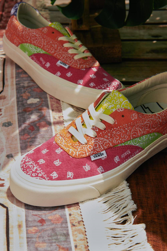 另一款多彩拼接则相反地加入了植绒材质,复古感更加浓郁,搭配炫彩配色却又不会显得老气。最后再辅以刺绣的腰果花和Acer字样,视觉效果相当惊艳,活力十足。这样细节拉满的Vans板鞋街头感和精致感兼具,妥妥的穿搭利器。
