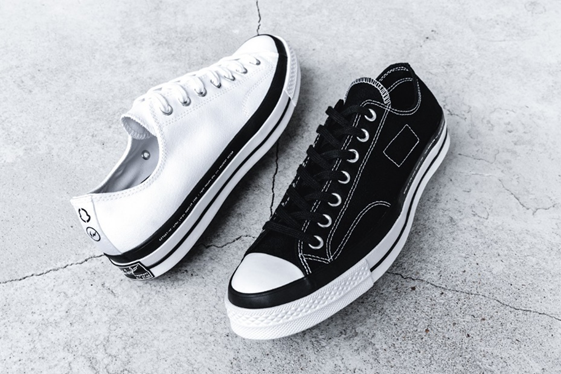 最后我们还是回归板鞋的本质再来了解一双传统板鞋,来自Converse和藤原浩的联名7 Moncler Fragment + Converse Chuck 70。设计采用极简风格,经典的黑白搭配永不过时。大家上脚板鞋既有格调又不会撞鞋,车缝线做工也相当精致,这款板鞋的选择会相当不错。