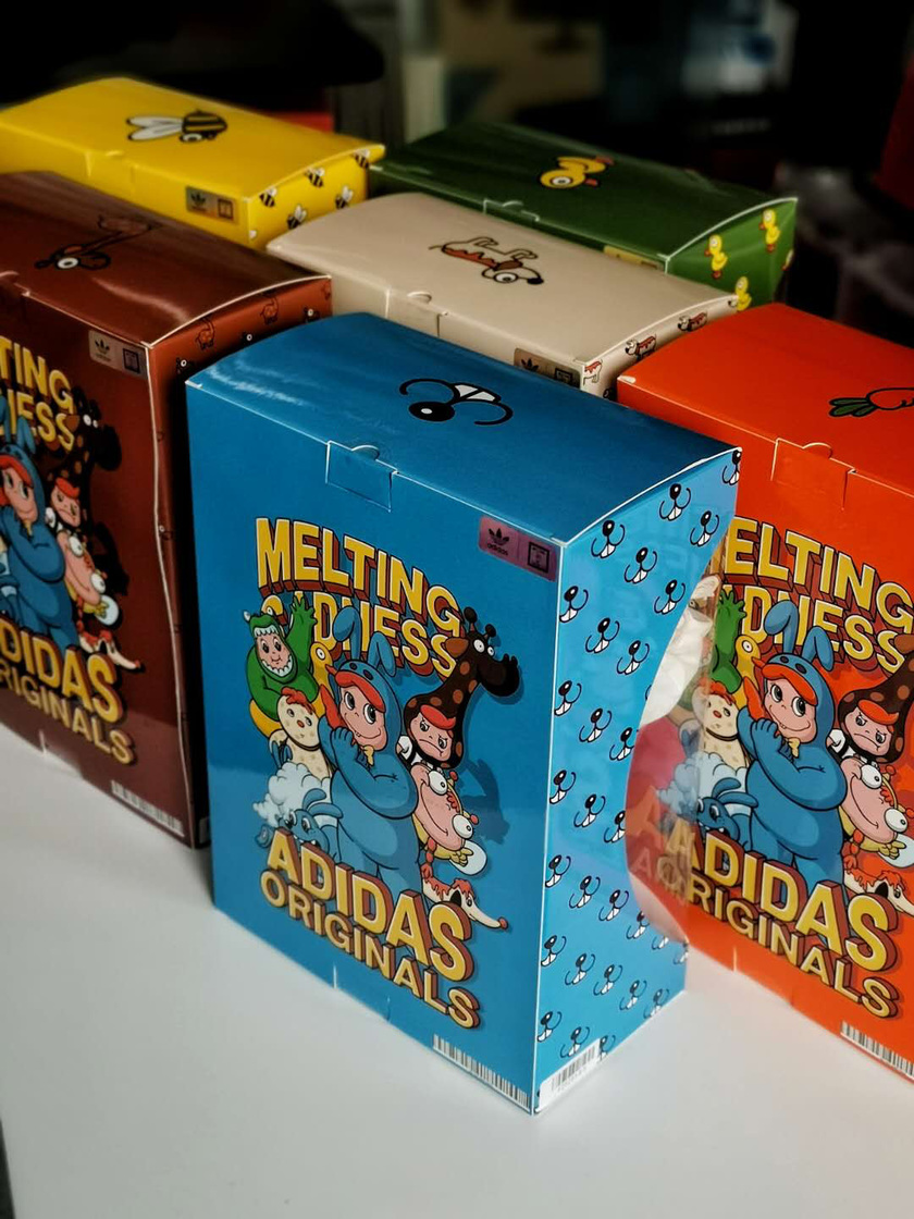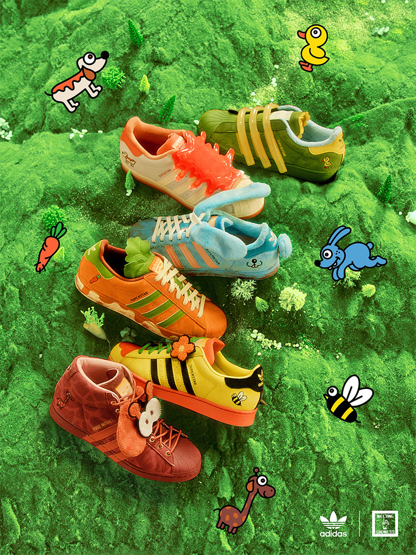 看完了两款实战鞋,日常的休闲鞋也得安排到位对不对。adidas的标志性鞋款贝壳头在今年时值50周年庆典,这双鞋款也选择和国内本土潮流艺术品牌 Melting Sadness展开联名合作,带给大家不小的惊喜。该联名系列包含六款不同配色,灵感分别来自于兔子、蜜蜂、长颈鹿、胡萝卜等充满童趣的可爱主题。每一款配色在鞋盒上就各具特色,让人只见其盒未见其鞋的情况下就想要入手。