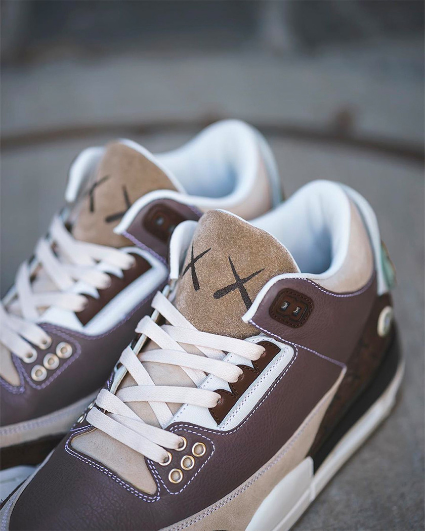 另外一款以 Air Jordan 3 为蓝本塑造,鞋舌经典 XX 图案表明 KAWS COMPANION 灵感,同时后跟也出现了极具辨识度的 KAWS COMPANION 头像,让人眼前一亮。