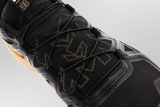 而鞋款本身的门道则更丰富,将GORE-TEX防水设计和SENSIFIT贴合技术在鞋面上做了完美融合,因为是朝向户外跑鞋设计的方向所以这样的技术结合几乎塑造的无懈可击的包裹感,为了提升这种体验在鞋带也是最简约的抽拉的绳索式设计。鞋面专门去做包覆设计,集防水、支撑和包裹感于一身。