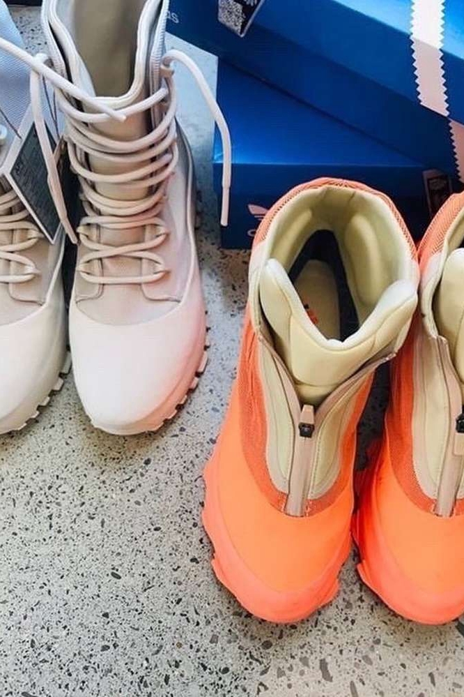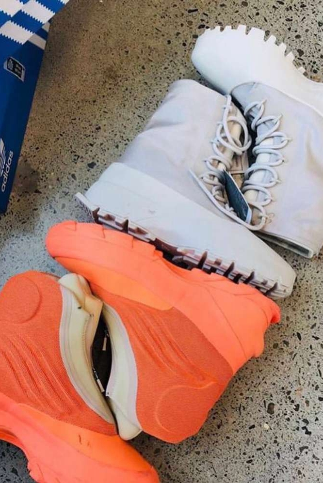 近日,ins 球鞋情报账号 @yeezymafia 又为我们展示了 Yeezy 1050 V3“Song Of Ash”实物照。另外同时曝光的还有一款全新的 Yeezy 1020 。两款鞋型均以高帮呈现,白/灰色与亮橙/米白色作为主调,吸睛度不俗。