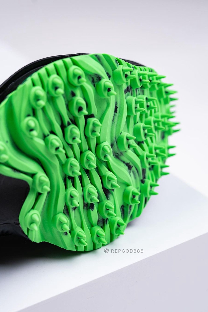曝光后争议颇大的 Off-White x Nike Air Zoom Tempo NEXT% 系列,此番其中的黑绿配色再度释出了实物近照。