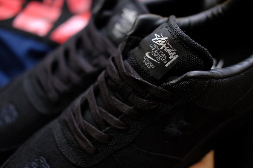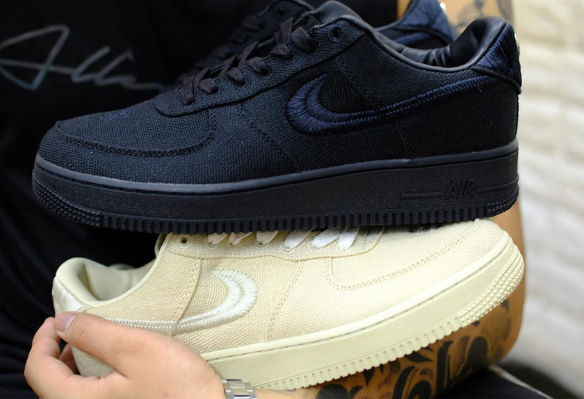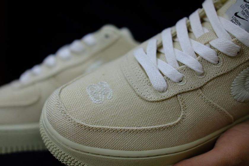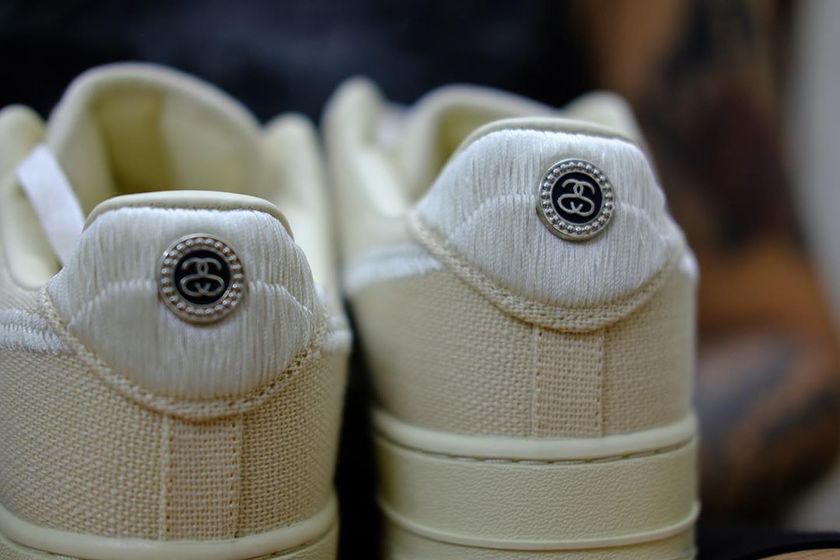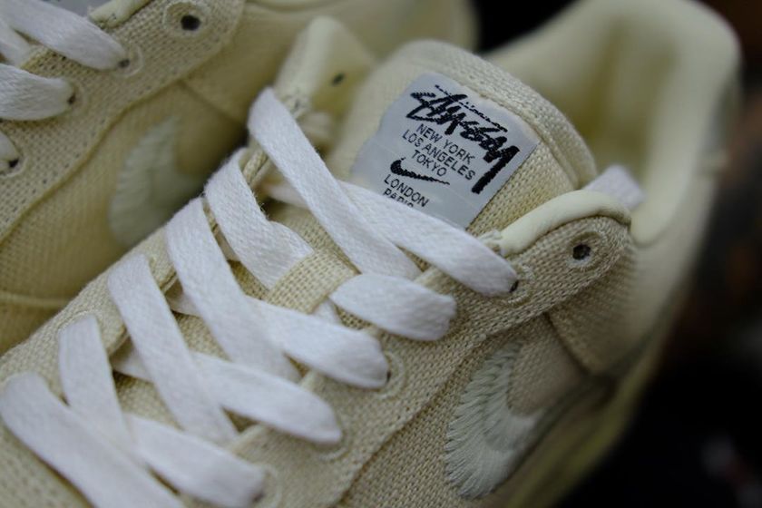 均以类似麻料的编织材质塑造鞋身,搭配刺绣 Swoosh ,后跟部分则饰以 Stüssy logo 表明特殊身份。