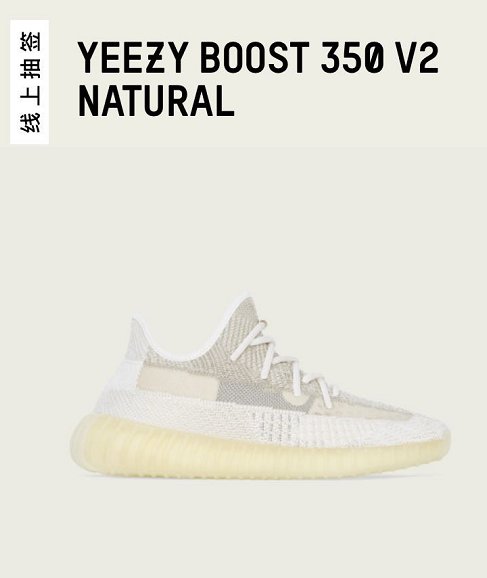 继上周奥利奥配色发售后,Yeezy 350 V2 “Natural” 配色紧接着也开启了抽签登记。