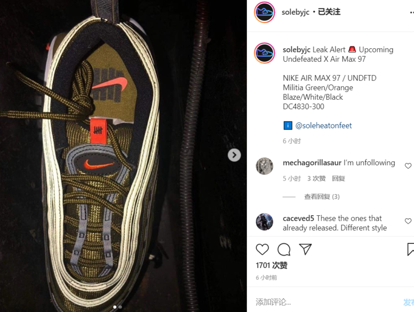 同时也与 2017 年双方推出的当时仅在 ComplexCon 上独家发售的第三款 Air Max 97 联名,不能说是毫无联系,只能说是一模一样。这到底是17年配色再次发售,还是什么情况,还需等待后续曝光。