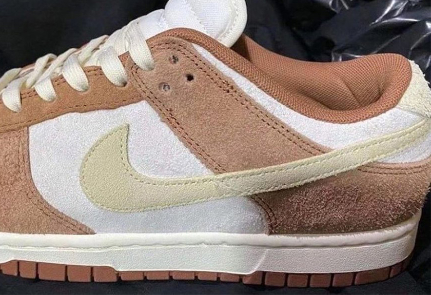 这款配色采用奶茶色与白色拼接,搭配米黄色 Swoosh ,并以翻毛皮材质塑造,整体气质十分温和讨喜。