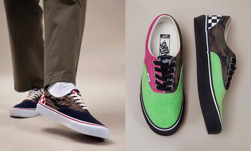 Era 联名则以不同材质不同印花,诸如迷彩元素、格纹元素等,拼接撞色设计主打,不俗的吸睛效果预计会吸引不少潮流人士青睐。