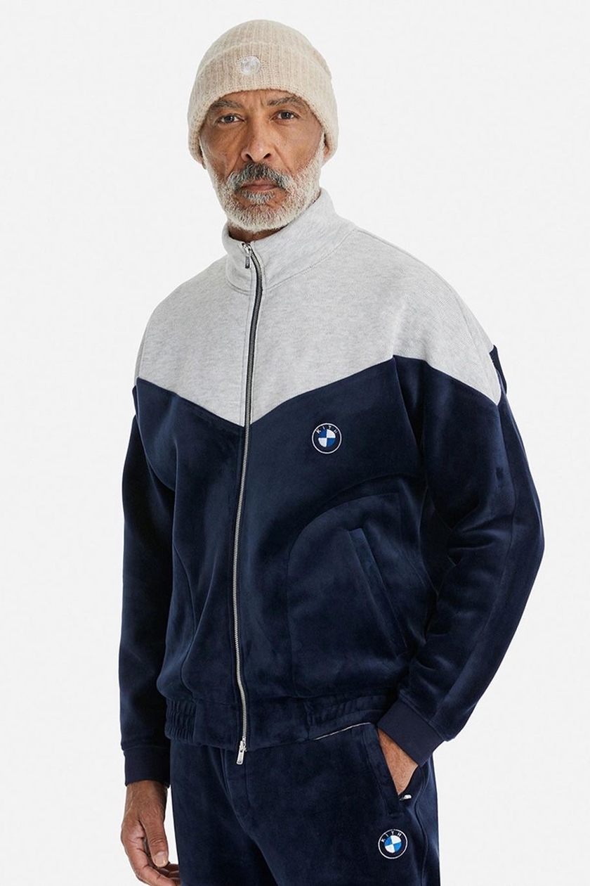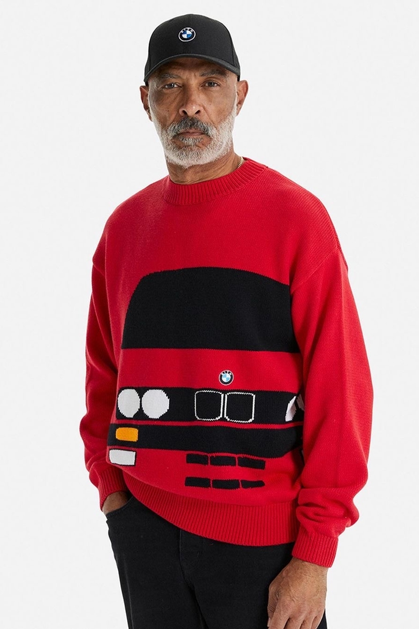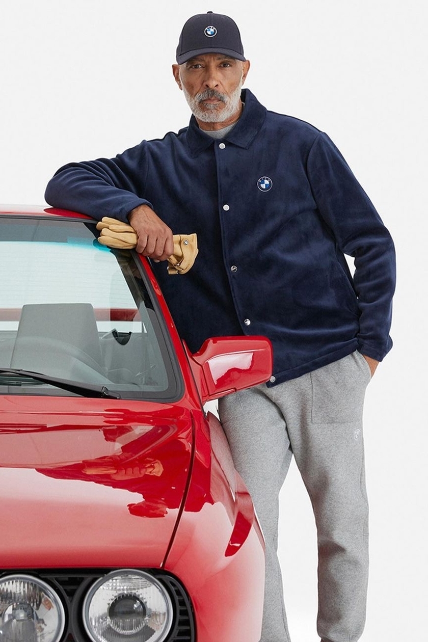 服饰单品包括棒球衫、卫衣、运动服、围巾、浴衣等,种类非常丰富。BMW 品牌经典的蓝白色作为主调,搭配双方品牌 logo 和 E30 图案,辨识度极强。
