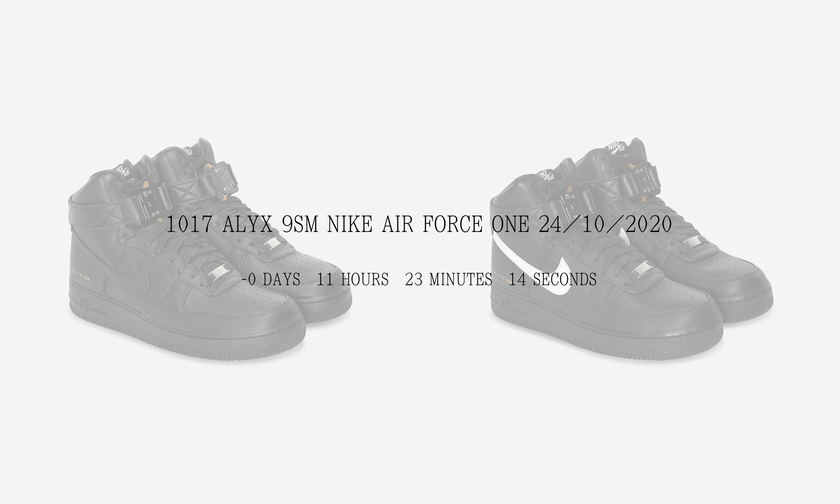前几日释出过发售信息的 1017 ALYX 9SM x Nike Air Force 1 ,今日1017 ALYX 9SM 官方线上店铺开启了发售倒计时,将于明天正式发售。