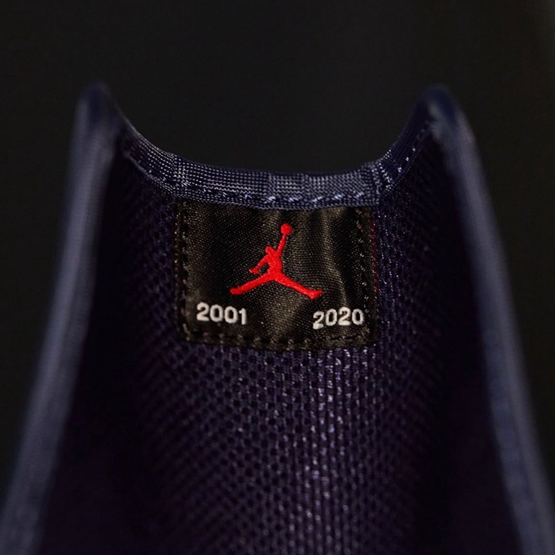 鞋身采用高质感午夜蓝皮革与白色皮革拼接而成,饰以银色 Swoosh ,飞翼 Logo ,气质高级前卫又不失科幻感。鞋舌内侧“2001、2020” 标识,与前一款银色的一样,表明曾经的限定身份。