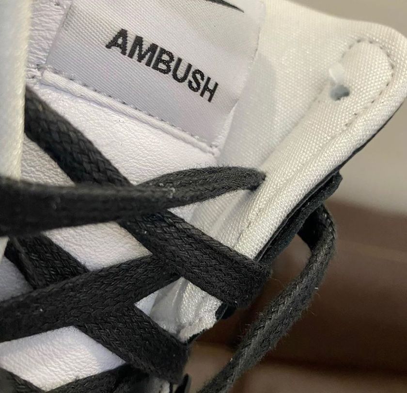采用经典黑白装扮示人,该联名在 Swoosh 和后跟处都做了比较鲜明的解构设计。质感出众的多材质打造,又使层次感丰富。出现在后跟与鞋舌的AMBUSH 字样,则凸显联名身份。
