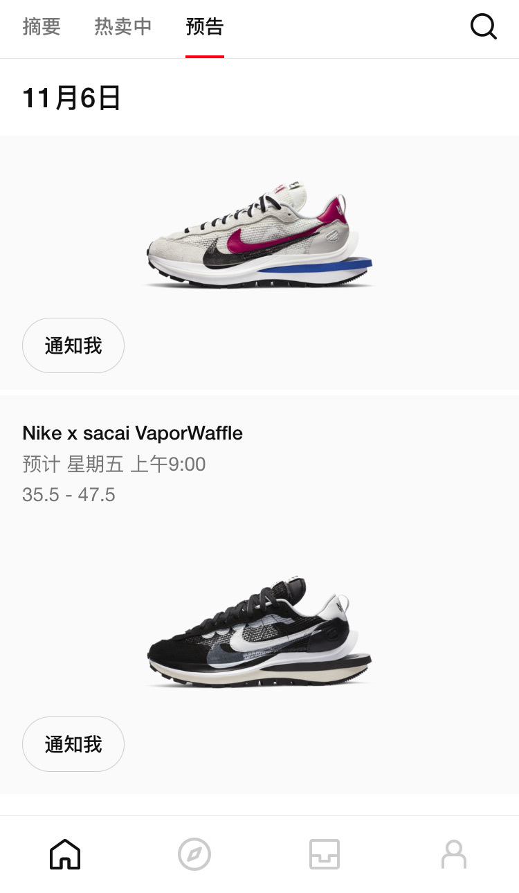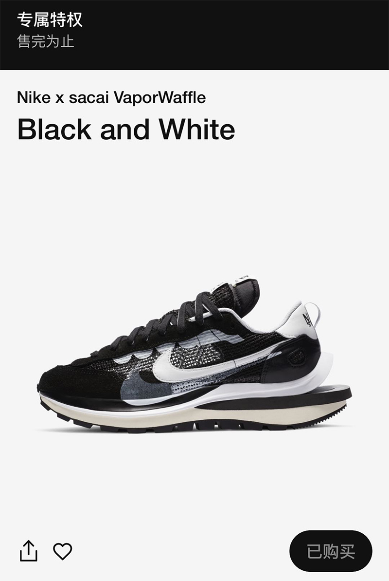 继前几日线下店铺开启抽签(北京三里屯店、上海001)以及今早 SNKRS APP 突袭专属发售黑色款 sacai x Nike VaporWaffle 后,目前 sacai x Nike VaporWaffle 将发售的两款配色上架了发售预告。