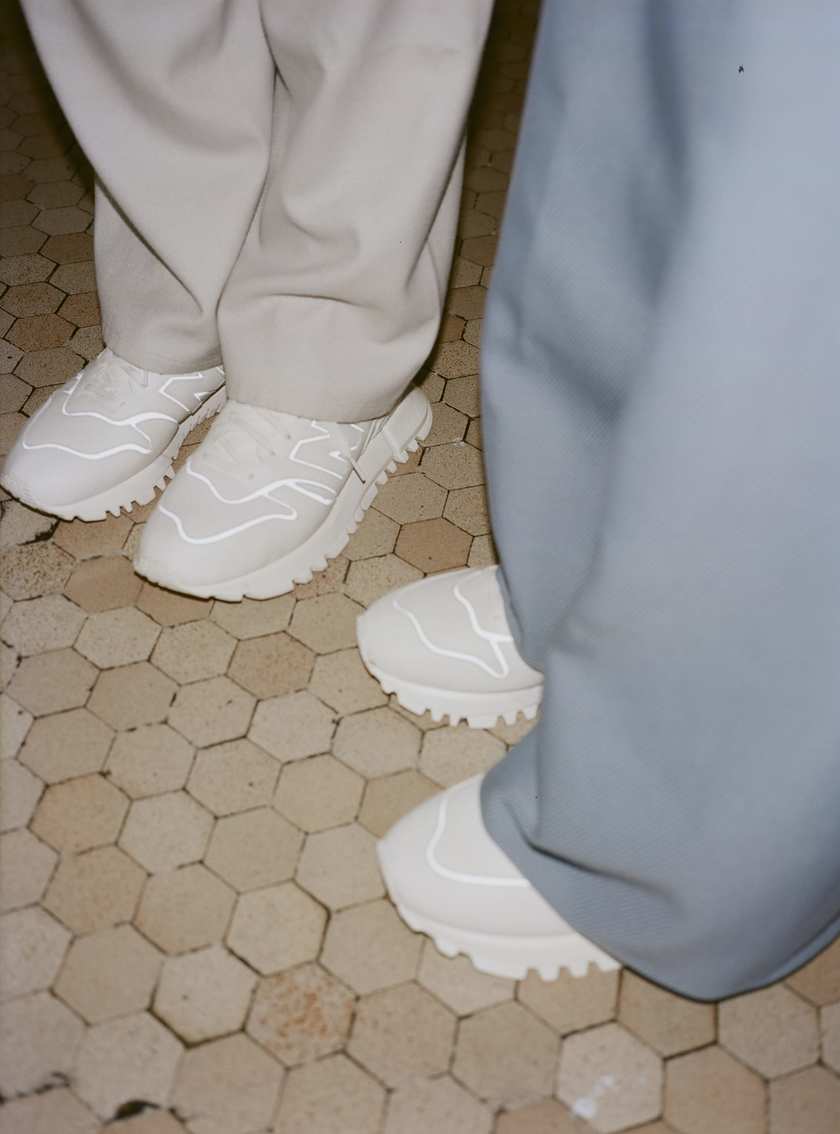 联名鞋以New Balanc R_C1300 为蓝本设计,白色鞋面搭配黑色内衬并饰以反光细节,简约百搭而不失亮点。外套则加入了吸水速干的气网粘合材料 NB HEAT 内衬,有型又有料。