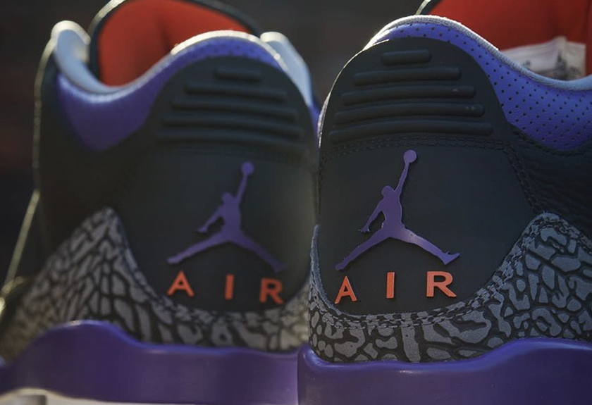 这款全新的 Air Jordan 3 采用黑色皮革主打,搭配该鞋型标志性爆裂纹元素,再饰以紫色、橙色细节,外观经典复古又拥有吸睛细节。
