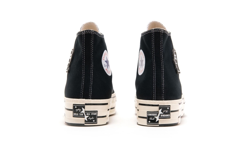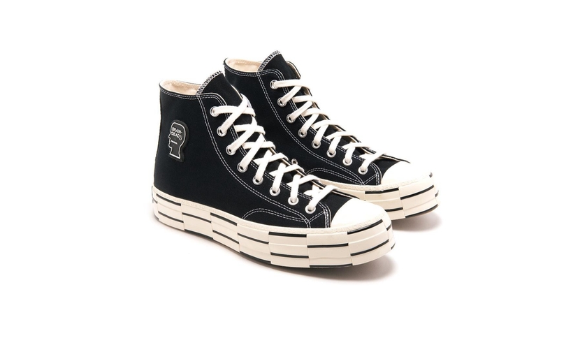 曝光的是黑白色调 Brain Dead x CONVERSE Chuck 70 。这款配色鞋身以黑色示人,中底部分则采用白色主打。整双鞋亮点设计在于鞋侧标志性 Brain Dead 徽标,后跟一上一下的不对称三星标以及中底错落的黑色细节。增高增厚中底设计,使得整个联名高街感更为强烈,相信会得到不少潮流玩家的青睐。