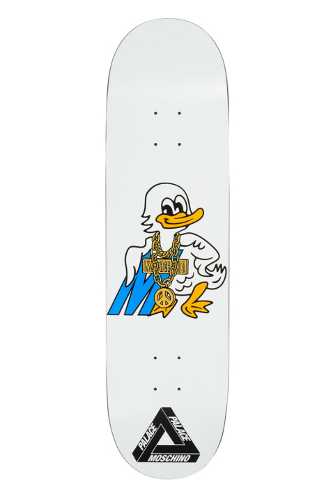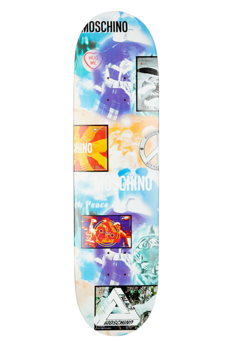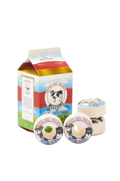 设计上,MOSCHINO 将品牌惯用的玩趣设计如充满想象的牛奶盒背包与滑板轮融入 PALACE logo ,带来了兼具街头潮流与时尚格调的单品。