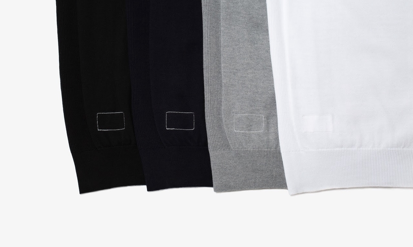 设计以 John Smedley 经典针织衫为蓝本重塑,通过 V 型领口造型与衣侧拼接结构细节,呈现出别具一格的运动休闲气质。