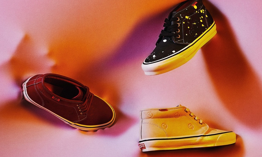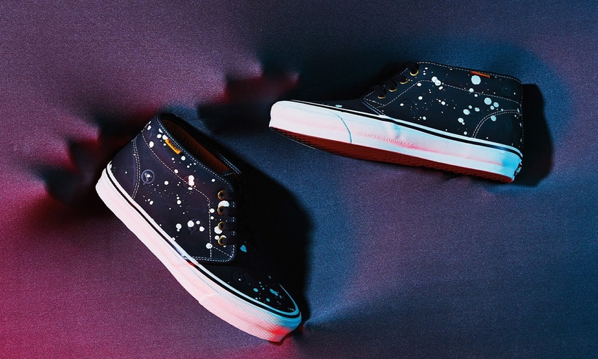 合作以 Vans Vault 旗下 OG Style 17 Mule LX 与 OG Chukka LX 两款鞋型作为设计蓝本重塑,纯色鞋面搭配 Vans 安纳海姆系列的标志性“V”字 logo 满印以及泼墨效果,视觉效果别致惊艳。