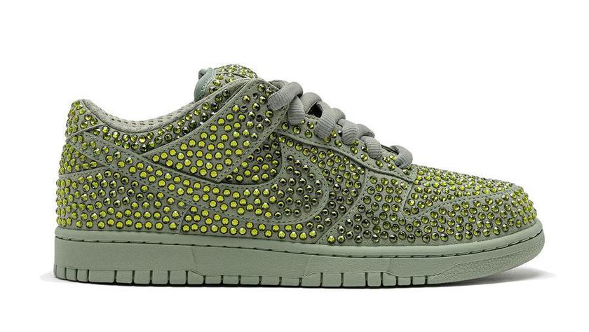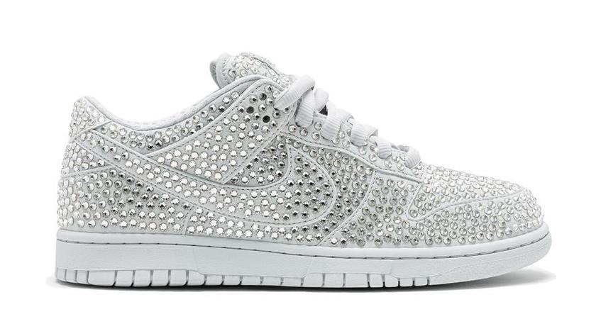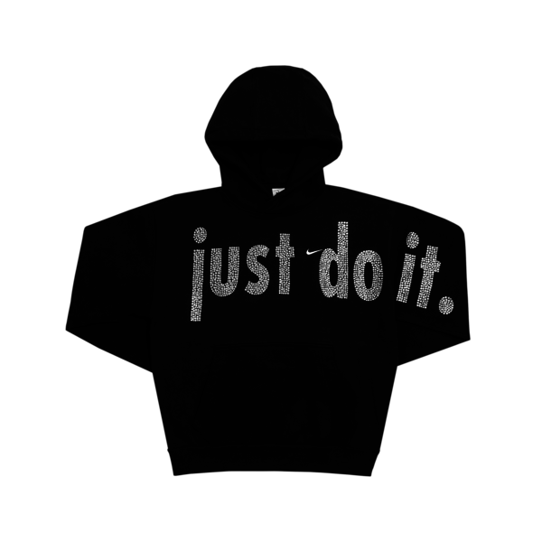 由于鞋身缀满类似施华洛世奇的水晶元素,该联名鞋款系列售价极高,为 550 美元,同时还有一件 JUST DO IT 水晶 slogan 卫衣同步登场,也同样价格不菲,要 495 美元。